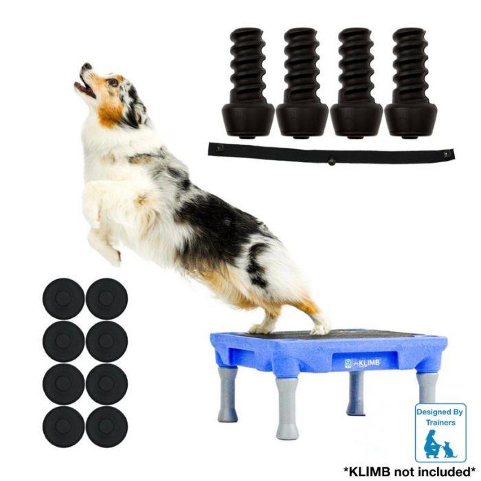 8 Sure Feet (2 ensembles de 4) : ajoutent de la stabilité et empêchent le glissement lorsque la KLIMB est utilisée sans pieds. Couvrent les trous de la surface afin de protéger les pattes de votre chien, particulièrement utile pour les chiots.