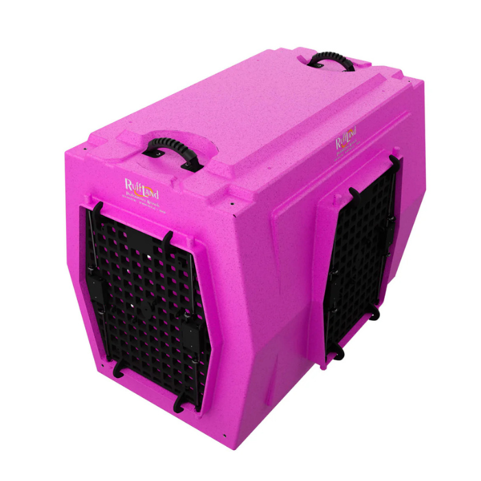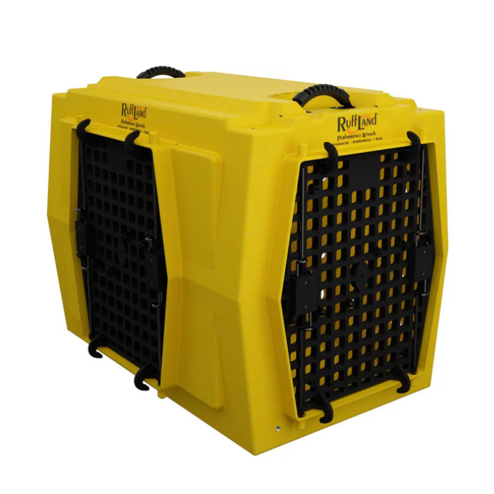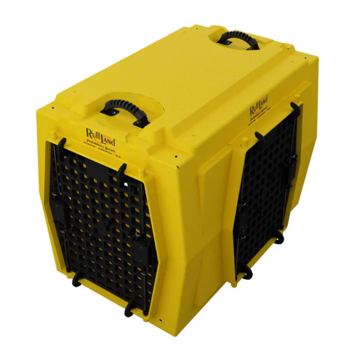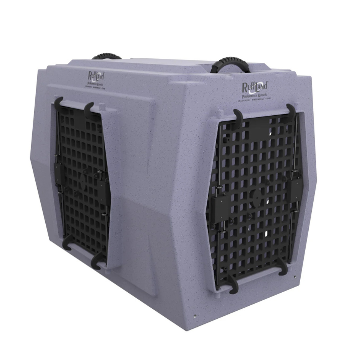 Les cages Ruffland, en polyéthylène, sont robustes, légères et assurent sécurité et confort à votre chien, où que vous soyez.