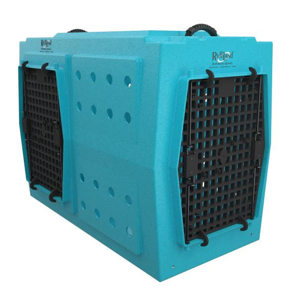 Les cages Ruffland, en polyéthylène, sont robustes, légères et assurent sécurité et confort à votre chien, où que vous soyez.
